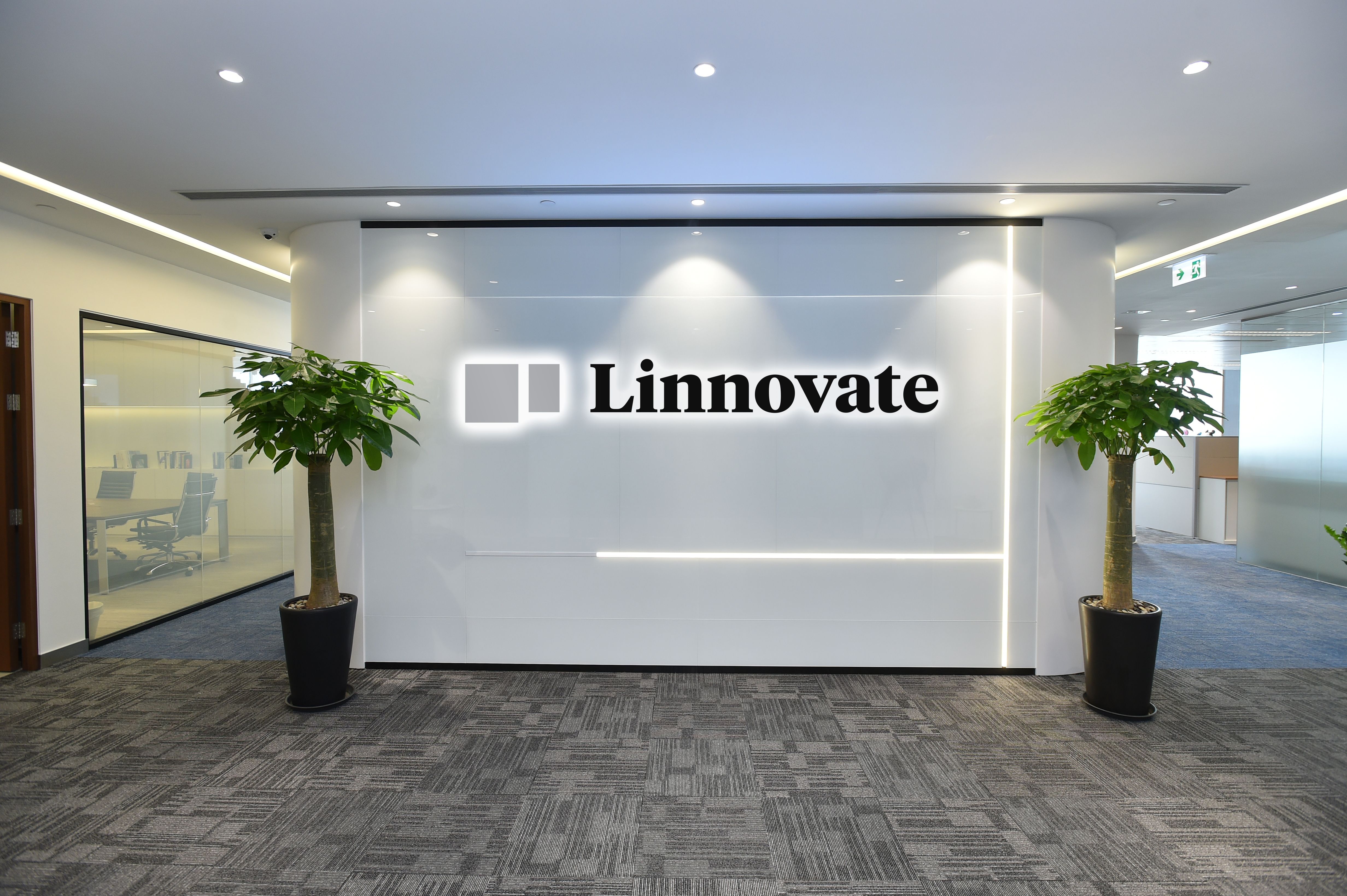 Linnovate with new brand name and logo at the office lobby.